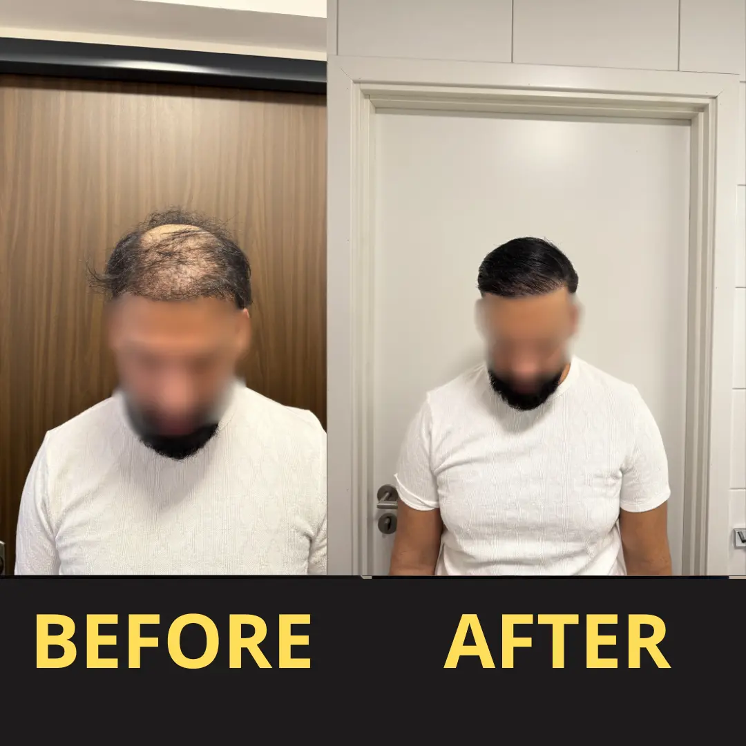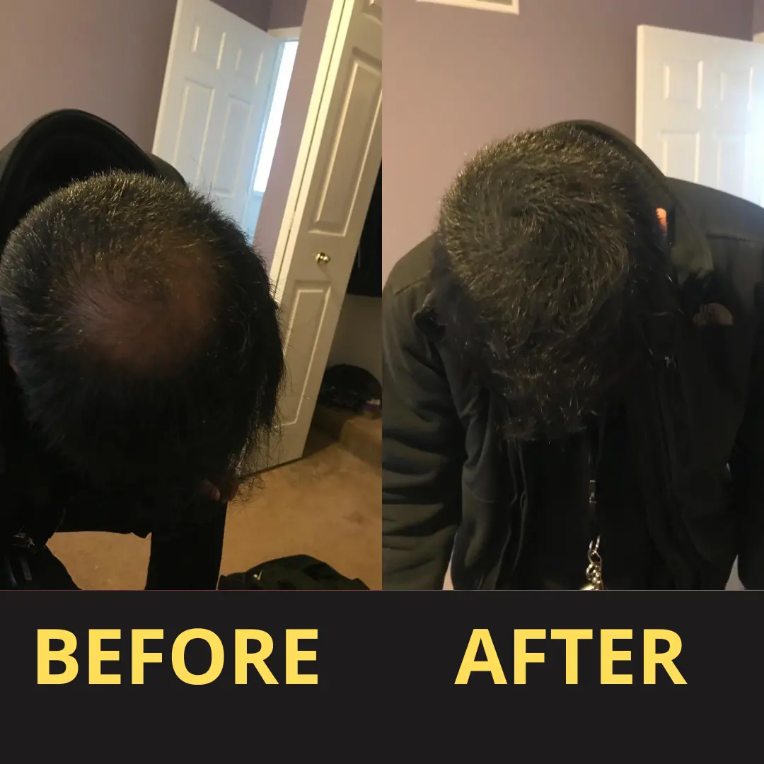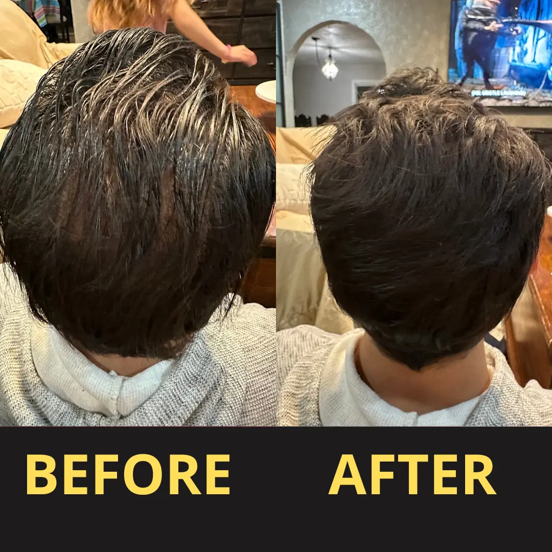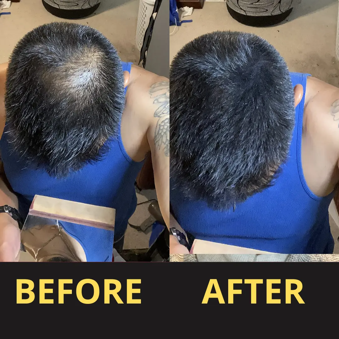 Drag the slider to see how Yagoo visually covers thinning areas with a waterproof hair concealer,creating a natural, sweat-resistant fuller hair look I after about 30 minutes.